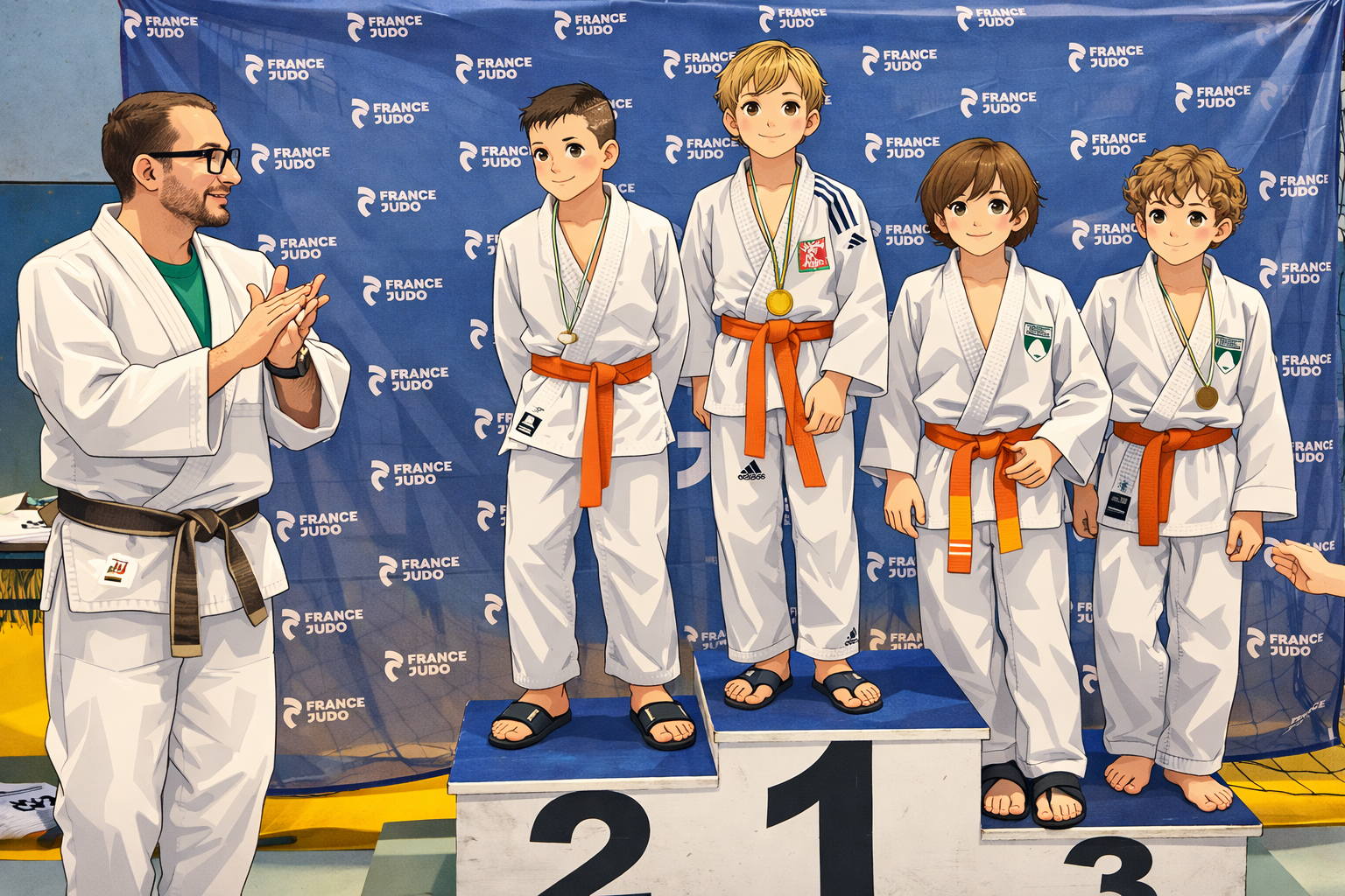 La journée a commencé en beauté avec deux mini-poussins ceintures blanches : Anas et Valentin. Tous deux repartent avec une médaille d’or 🥇 : un excellent début et un grand bravo à eux !