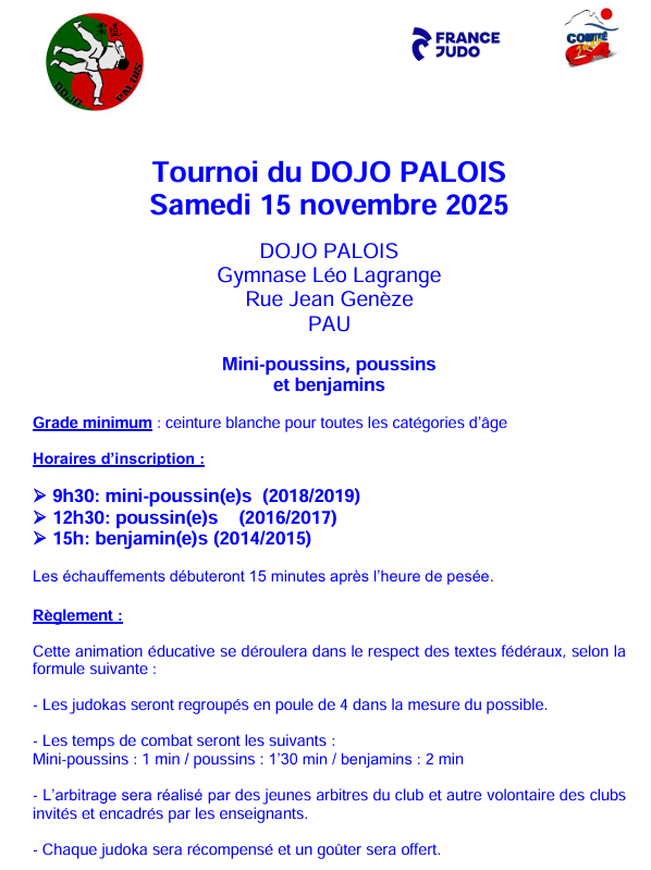 Rendez-vous au Dojo Palois pour une journée pleine de compétition et de camaraderie !
