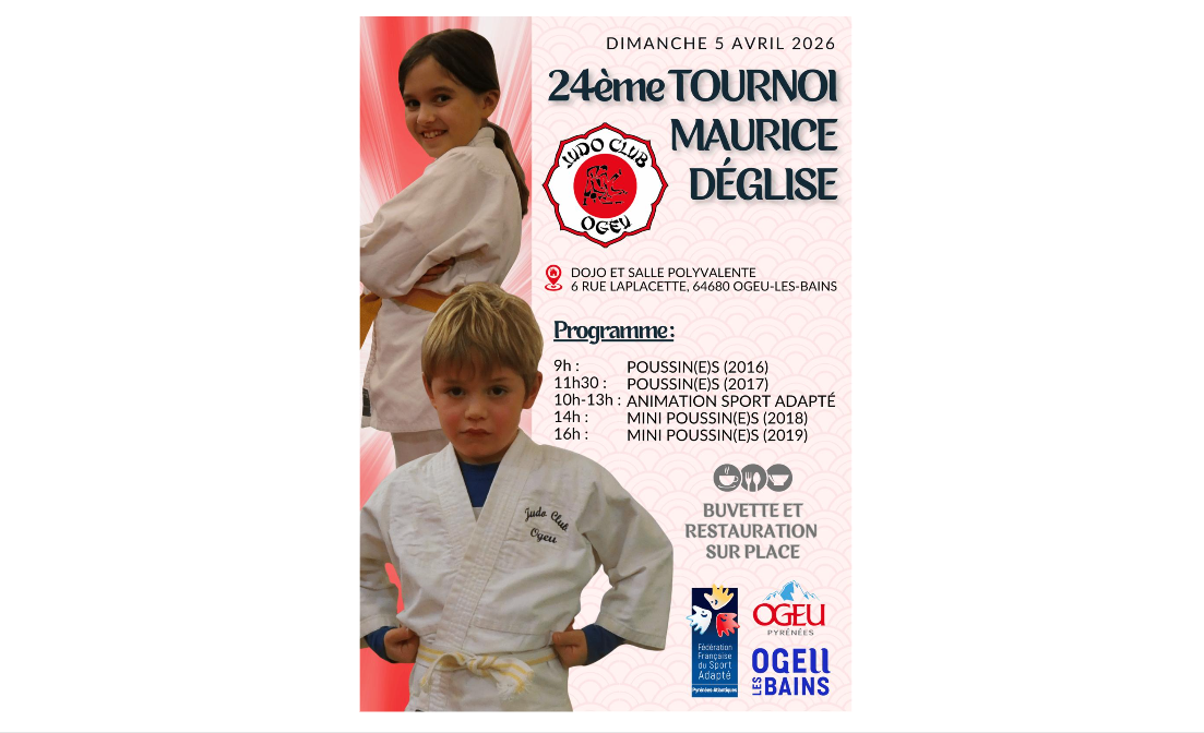 Les mini-poussin(e)s et poussin(e)s de Lescar Judo sont invité(e)s à participer au 24° tournoi Maurice Déglise organisé par le Judo Club Ogeu le dimanche 05 avril 2026 !